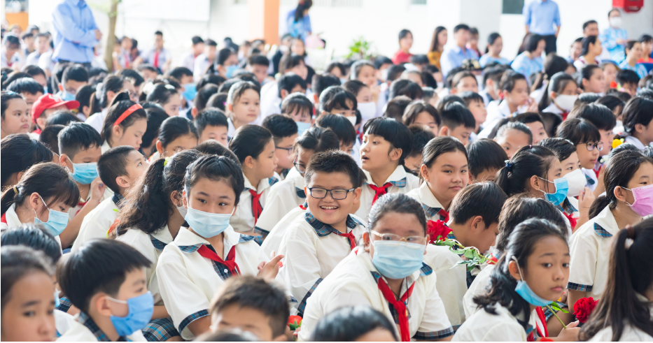 Các học sinh đang háo hức chờ đợi buổi lễ